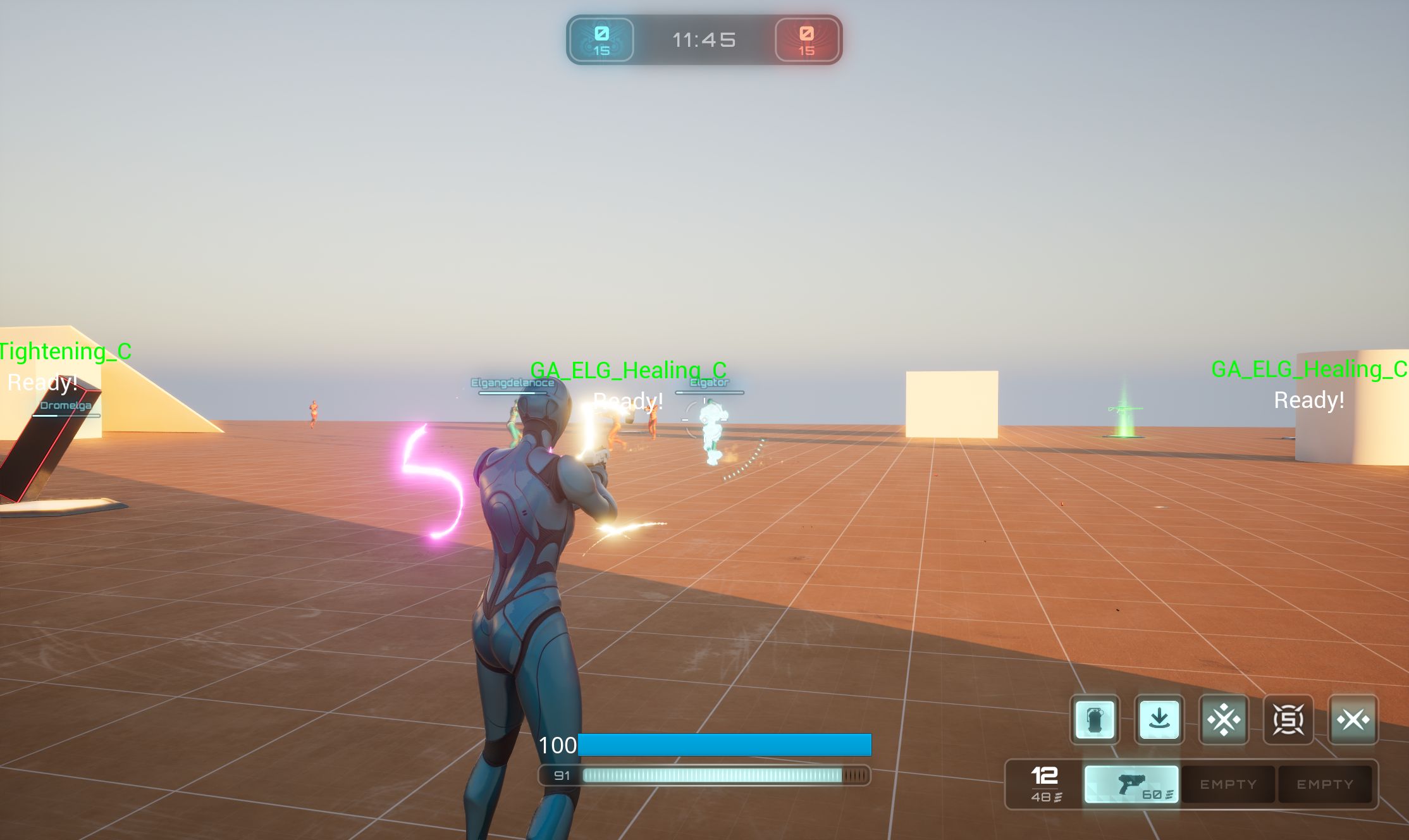 The intent of this project is to explore Lyra's architecture and use GAS (Gameplay ability system) framework to prototype a new experience, progressively adding new gameplay focused content and integrating it with the current base. This is being done alongside Client mode playtesting, as all of these features are meant to be online multiplayer ready. Testing is being done to assure that both gameplay and cosmetics aspects are correctly replicated.